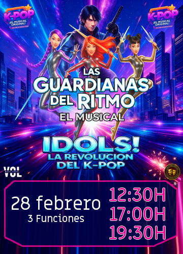 Con la estética vibrante de las grandes producciones internacionales e inspirado en el universo visual del K-POP, LAS GUARDIANAS DEL RITMO-EL MUSICAL ¡IDOLS-LA REVOLUCIÓN DEL K-POP! es un espectáculo que fusiona música, narrativa, y poder escénico en una experiencia única.